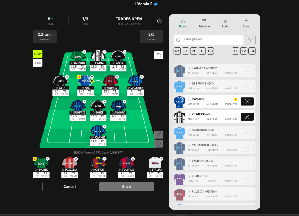 Good luck to all Fantasy Serie A managers: see you before Round 9, hopefully higher in the standings!