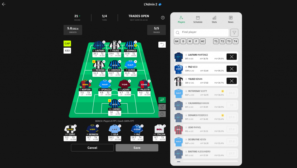 Good luck to all Fantasy Serie A managers: see you before Round 22, hopefully higher in the standings!