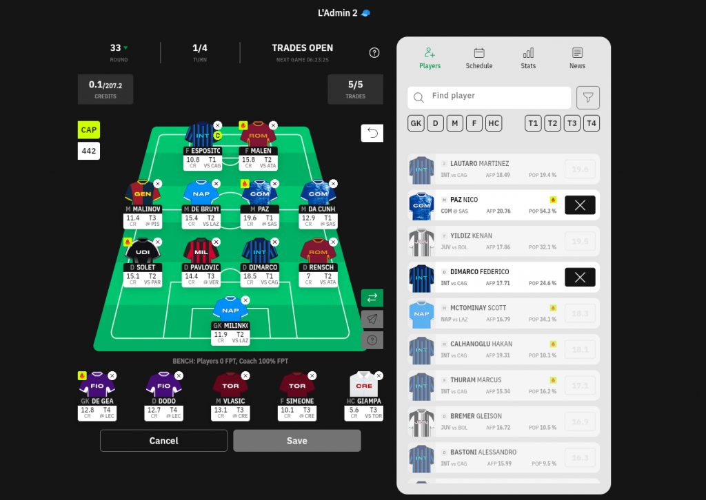 Good luck to all Fantasy Serie A managers: see you before Round 34, hopefully higher in the standings!