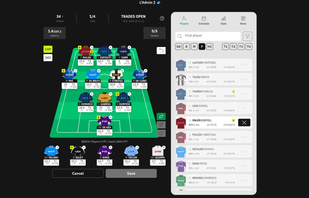 Good luck to all Fantasy Serie A managers: see you before Round 35, hopefully higher in the standings!