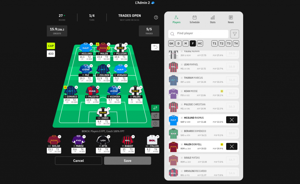Good luck to all Fantasy Serie A managers: see you before Round 28, hopefully higher in the standings!